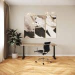 Onze bureaubladen zijn vervaardigd van hoogwaardige gemelamineerde meubelpanelen met een kern van MDF of spaanplaat. Beide zijden van de bureaubladen zijn gemelamineerd en rondom is elk blad afgewerkt met bijbehorend 1mm kantenband. Hierdoor zijn de verschillen tussen deze twee kernen verwaarloosbaar.
