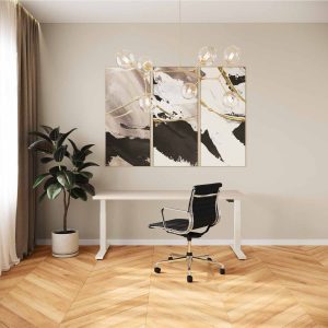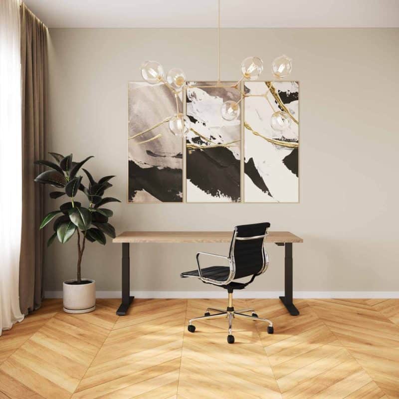 Monteer eerst het onderstel volgens de bijgeleverde montagehandleiding. Leg daarna een kleed of schoon stuk karton op de grond en plaats uw bureaublad hierop. Monteer het onderstel vervolgens ondersteboven op het bureaublad. Wij boren de bladen niet voor, dus u kunt zelf de afstand van de poten tot de rand van het blad bepalen. Meestal is dit tussen de 1-5 cm.