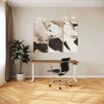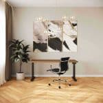 Zoekt u een bureau dat minder diep is of juist breder dan dit zit sta bureau? Overweeg dan het Elswout zit sta bureau XL. Dit unieke bureau, ontworpen en geproduceerd in Nederland, biedt voeten van 41 tot 98 cm diep en een innovatieve tussenbalk die bladen ondersteunt tot 260 cm breed—een zeldzaamheid voor zit sta bureaus.