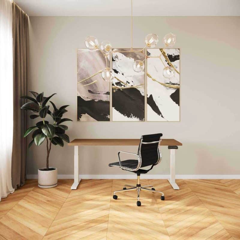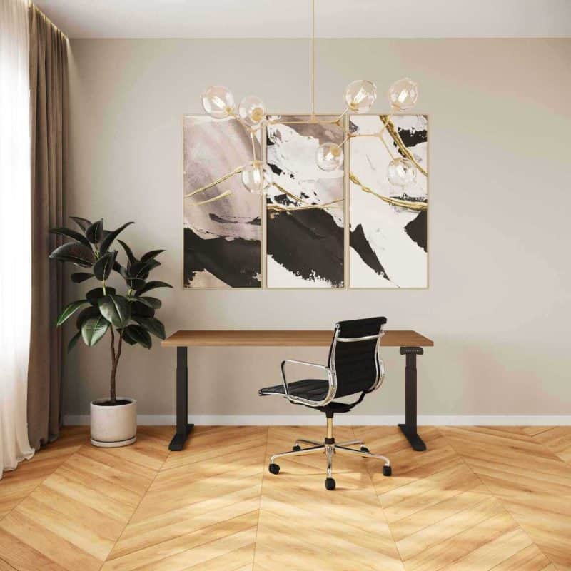 Het op maat gemaakte Casella Eik Bruin (H1386 ST40) zit sta bureau van Elswout combineert functionaliteit met een warme, natuurlijke uitstraling. De rijke, bruine tint van het Casella Eik Bruin decor creëert een gezellige en professionele sfeer, perfect voor zowel thuiswerkplekken als kantoren. Dit hoogwaardige bureaublad, verkrijgbaar in diktes van 18 en 28 mm, wordt ondersteund door een extreem sterk zit sta bureau frame dat een gewicht van 125 kg kan dragen. Het bureau kan elektrisch in hoogte worden versteld volgens de arbo-norm (61-126 cm inclusief blad), zodat u zowel zittend als staand comfortabel kunt werken. Met de controller die beschikt over 3 geheugenstanden, past u de hoogte van het bureau eenvoudig aan met slechts een druk op de knop.