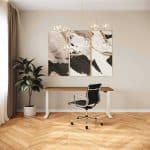 Of het nu gaat om een drukke kantooromgeving of een stijlvolle thuiswerkplek, de zit sta bureaus XL van Elswout zijn ontworpen met duurzaamheid en esthetiek in gedachten. Geïnspireerd door en ontwikkeld nabij het prachtige Landgoed Elswout in Haarlem, worden de bureaubladen vakkundig geproduceerd in Zeeland en komen ze met 5 jaar garantie.