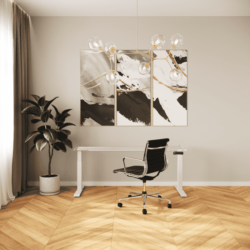 Dit bureau is voorzien van 68 cm lange voeten, waardoor een bureaubladdiepte van 70 tot 85 cm wordt aanbevolen. Onze Halifax Eiken Robuust bureaubladen, vervaardigd in onze fabriek in Nederland, kunnen naar wens uitgerust worden met CNC-geboorde gaten voor de integratie van powerdocks en kabelbeheer. Dankzij het verstelbare frame, dat reikt van 120 tot 190 cm, is het mogelijk om bureaubladen van 120 cm tot een maximale breedte van 210 cm te monteren.