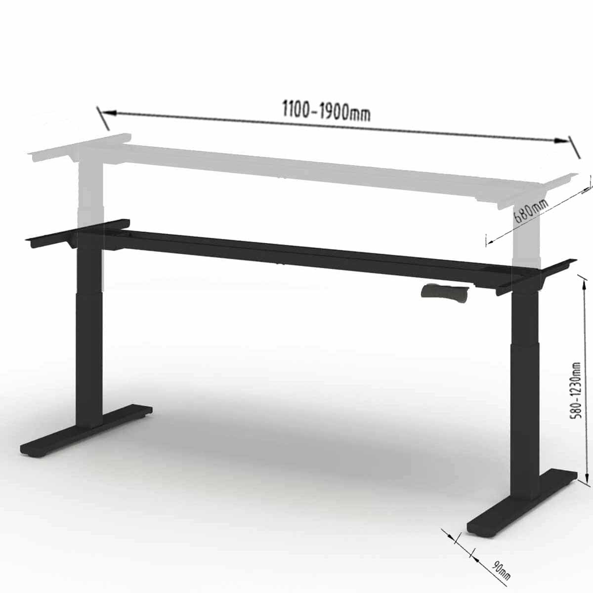 Afmetingen zwart zit-sta bureau onderstel