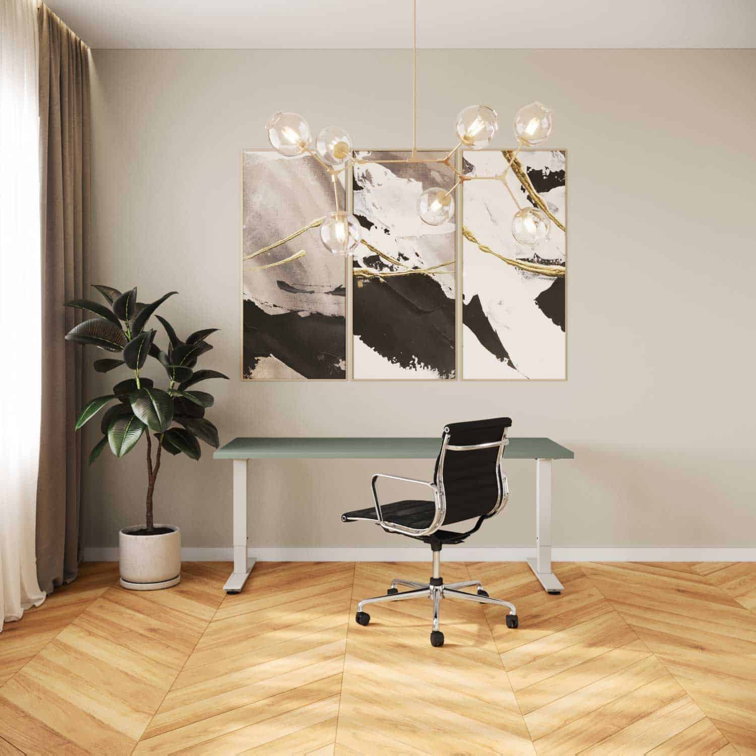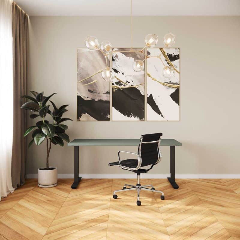 Dit op maat gemaakte Eucalyptus groen (U604 ST9) T-poot bureau van Elswout combineert robuuste kwaliteit met een eigentijdse, verfijnde uitstraling. Het bureaublad, met een kern van spaanderplaat, is verkrijgbaar in een dikte van 18 mm. Het bureau rust op een uiterst stabiel T-poot onderstel dat voldoet aan alle arbo-normen. Met de meegeleverde inbussleutel kunt u de hoogte van het bureau eenvoudig aanpassen tussen 62-86 cm, zodat u comfortabel kunt werken. Overweegt u een bureau waarmee u zowel zittend als staand kunt werken? Bekijk dan onze uitgebreide collectie Zit Sta bureaus.