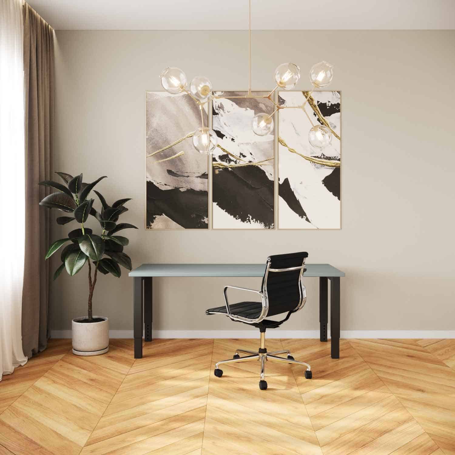 Het op maat gemaakte Fjord Groen bureau (U636 ST9) van Elswout met N poot heeft een hoogwaardige bureaublad van 18mm of 28 mm dik. Het bureaublad wordt ondersteund door een buitengewoon stabiel 4-poots bureauonderstel dat voldoet aan alle arbo-eisen. Het bureau is in hoogte verstelbaar (62-86 cm) met behulp van een inbussleutel, zodat het voor iedereen mogelijk is om comfortabel achter het bureau te zitten en te werken. Wilt u afwisselend zittend en staand werken? Bekijk dan onze collectie Zit Sta bureaus.