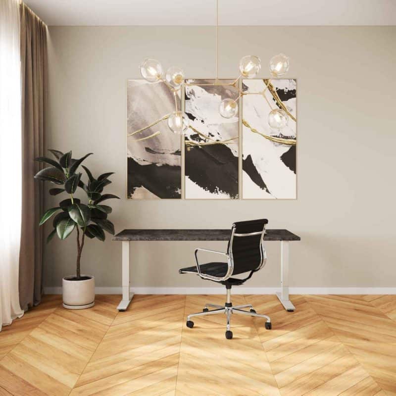 Dit maatwerk Lavasteen (F222 ST76) T poot bureau, geproduceerd door Elswout, beschikt over een robuust bureaublad met een kern van MDF en een dikte van 28 mm. Het bureau rust op een zeer stabiele T-poot onderstel dat aan alle arbo-normen voldoet. Dankzij de meegeleverde inbussleutel kan het bureau in hoogte aangepast worden tussen 62-86 cm, wat iedereen de mogelijkheid biedt om comfortabel zittend te werken. Overweegt u de mogelijkheid van zowel zittend als staand werken? Ontdek dan onze collectie Zit Sta bureaus.