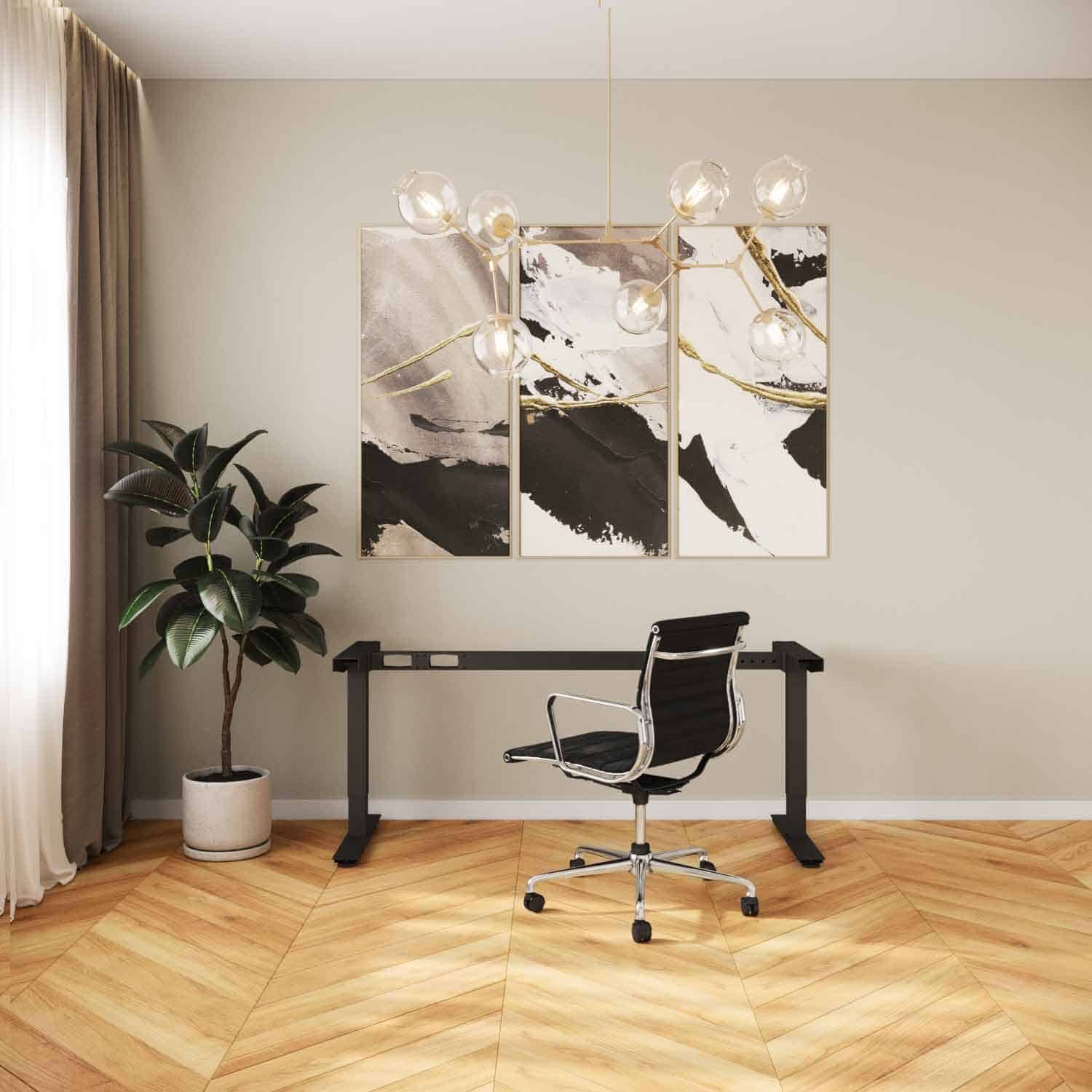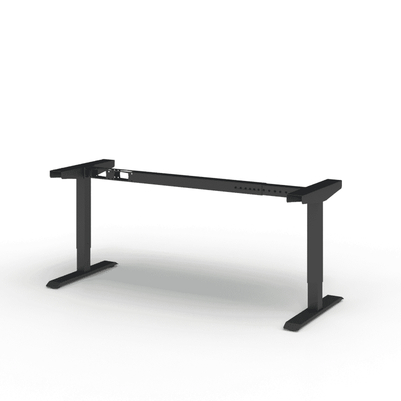 Elegant T poot Bureauonderstel in zwart met een extreem sterke middenbalk. Deze is als het blad geplaatst is niet zichtbaar en is altijd zwart. Dit frame is bedoelt voor zowel grote als kleine bureaubladen. Dankzij de telescopische middenbalk kunt u elk formaat kwijt op dit onderstel. De poten zijn met epoxy lak afgewerkt en in hoogte verstelbaar van 62-86 cm. Let op: dit losse bureau onderstel wordt geleverd zonder tafelblad/bureaublad. Bij ‘breedte’ kunt u de maat van de verstelbare tussenbalk kiezen voor het blad wat u op het onderstel wilt leggen. Bij ‘diepte’ kiest u de maat van de voeten: voor een blad tot 79 cm heeft u een diepte van 60 cm nodig. Een diepte van 80 cm is geschikt voor bladen tot 100cm diep.