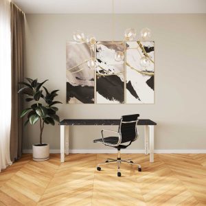 Het op maat gemaakte Marmeren bureau (F812 ST9) van Elswout met N poot heeft een hoogwaardige bureaublad van 18mm of 28 mm dik. Het bureaublad wordt ondersteund door een buitengewoon stabiel 4-poots bureauonderstel dat voldoet aan alle arbo-eisen. Het bureau is in hoogte verstelbaar (62-86 cm) met behulp van een inbussleutel, zodat het voor iedereen mogelijk is om comfortabel achter het bureau te zitten en te werken. Wilt u afwisselend zittend en staand werken? Bekijk dan onze collectie Zit Sta bureaus.
