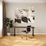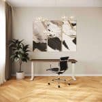 Op zoek zijn naar een bureau dat minder of juist dieper is dan dit zit sta bureau? Dan is het Elswout zit sta bureau XL het bureau voor u. In Nederland ontworpen en gefabriceerd met voeten van 41 tot 98 cm diep en een unieke tussenbalk welke bladen draagt tot 240 cm breed. Uniek voor een zit sta bureau.