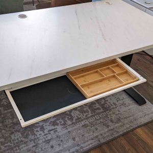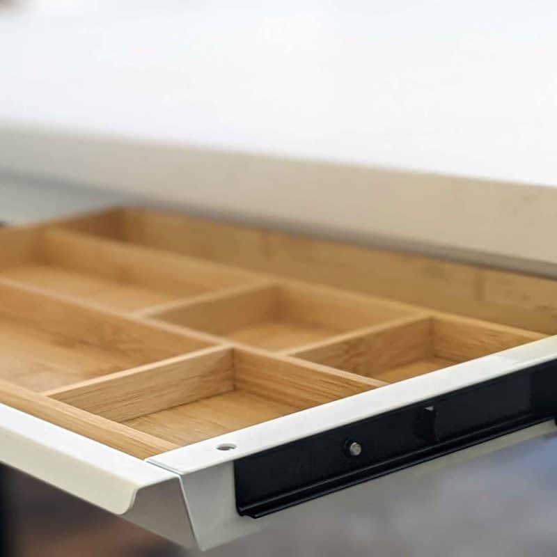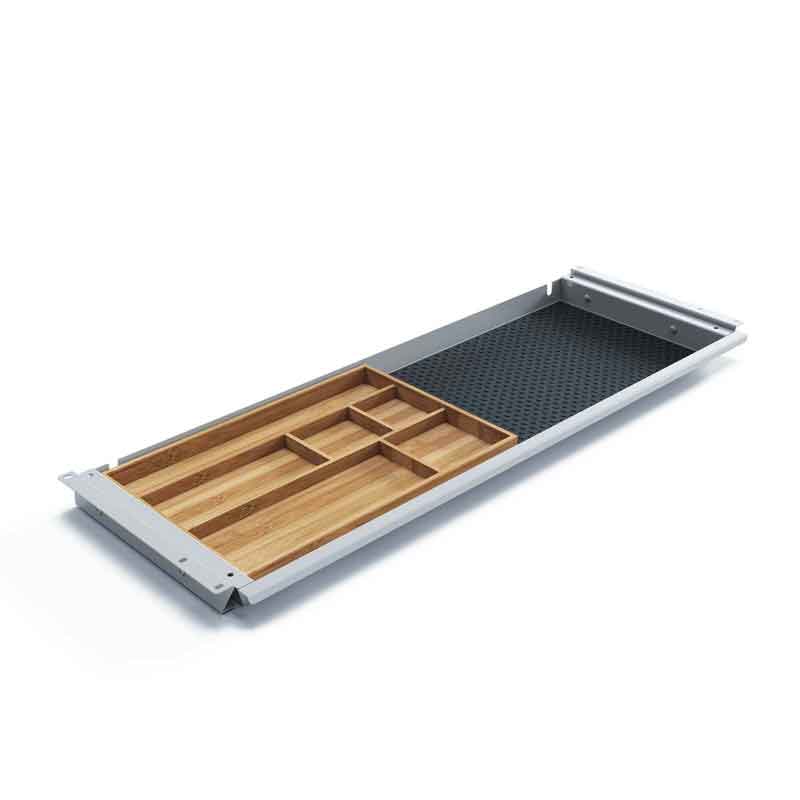 Wat dit model uniek maakt, is het geïntegreerde opbergbakje van bamboehout, een duurzaam materiaal dat niet alleen sterk is, maar ook een natuurlijke uitstraling geeft aan het geheel. Dit bakje is perfect voor het ordenen van kleinere accessoires, zodat je altijd alles bij de hand hebt. De Persoonlijke lade Grip-SL is beschikbaar in stijlvol zwart of strak wit, waardoor hij moeiteloos in elk interieur past.