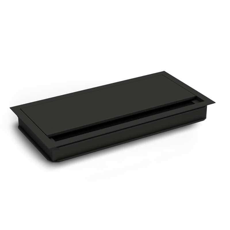 De zwarte borstelafdichting verhoogt niet alleen de esthetiek maar zorgt ook voor een zachte doorvoer van kabels, waardoor beschadiging en slijtage worden voorkomen. Deze luxe kabeldoorvoer is meer dan alleen een functioneel accessoire; het is een statement van verfijning en efficiëntie, ontworpen om de uitstraling van uw werkruimte naar een hoger niveau te tillen.