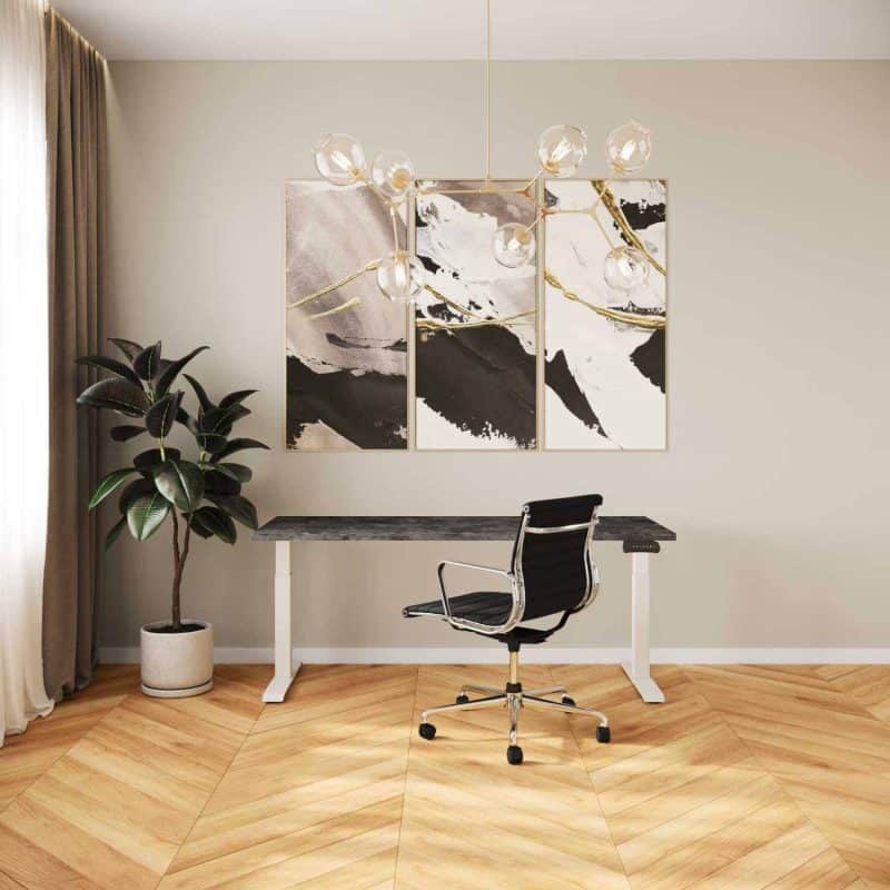 Het op maat gemaakte Rock Metallic Antraciet (F121 ST87) zit sta bureau van Elswout heeft een hoogwaardige bureaublad van 28 mm dik. Het zit sta bureau frame is extreem sterk en kan 125 kg dragen. Het zit sta bureau kan elektrisch in hoogte worden versteld volgens de arbo norm (61-126 cm incl. blad), waardoor iedereen comfortabel kan werken, zowel zittend als staand. De controller heeft 3 geheugen standen zodat het bureau eenvoudig naar de juiste hoogte gaat met een druk op de knop.