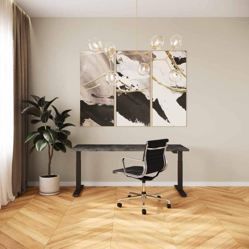 Het op maat gemaakte Rock Metallic Antraciet (F121 ST87) zit sta bureau met Linak Piezo van Elswout is uniek in zijn soort. Gefabriceerd in Nederland biedt dit solide en verfijnde elektrische zit sta bureau met een MDF-kern de mogelijkheid voor u om de exacte afmetingen te kiezen. Met een luxe Rock Metallic Antraciet bureaublad van 28 mm dik en een zwart of wit T-poot onderstel, onderscheidt dit ontwerp zich door zijn kwaliteit en flexibiliteit. Uitgerust met hoogwaardige Linak motoren en verstelbaar in hoogte van 62 tot 128 cm, is dit bureau uitgerust met een met de Red Dot bekroonde DPG1C-bediening.