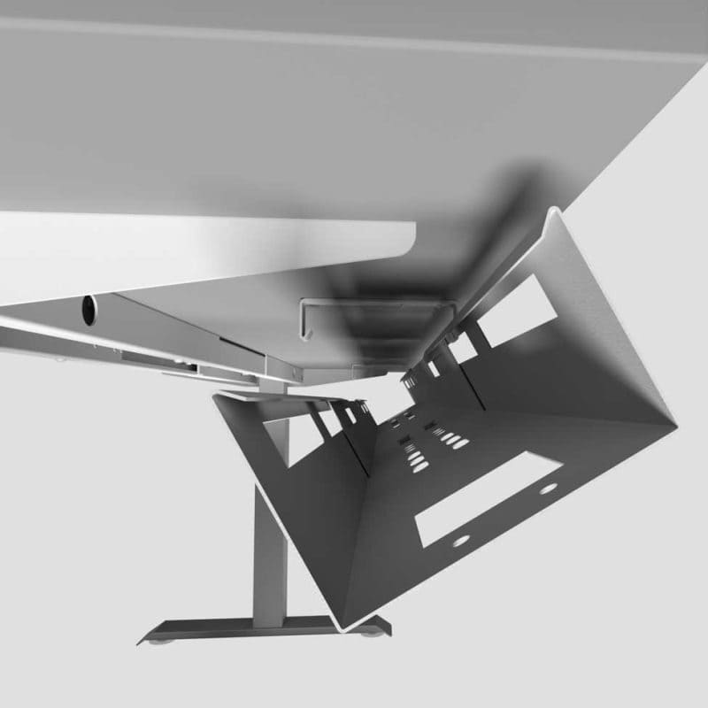 Het bevestigen van de kabelgoot is kinderspel. Met behulp van twee beugels en eenvoudige zelftappende schroeven monteert u de kabelgoot moeiteloos en snel onder uw bureau. Dit gebruiksvriendelijke systeem zorgt ervoor dat u zonder gedoe uw werkplek kunt structureren.