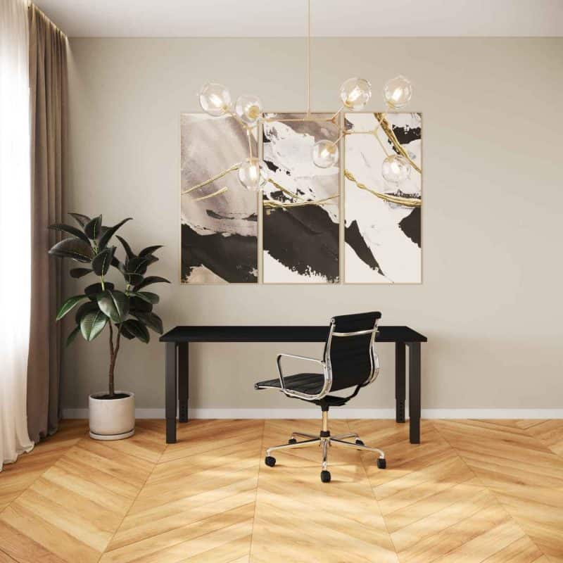 Het op maat gemaakte Zwart Matte bureau (U999 ST9) van Elswout met N poot heeft een hoogwaardige bureaublad van 18mm of 28 mm dik. Het bureaublad wordt ondersteund door een buitengewoon stabiel 4-poots bureauonderstel dat voldoet aan alle arbo-eisen. Het bureau is in hoogte verstelbaar (62-86 cm) met behulp van een inbussleutel, zodat het voor iedereen mogelijk is om comfortabel achter het bureau te zitten en te werken. Wilt u afwisselend zittend en staand werken? Bekijk dan onze collectie Zit Sta bureaus.
